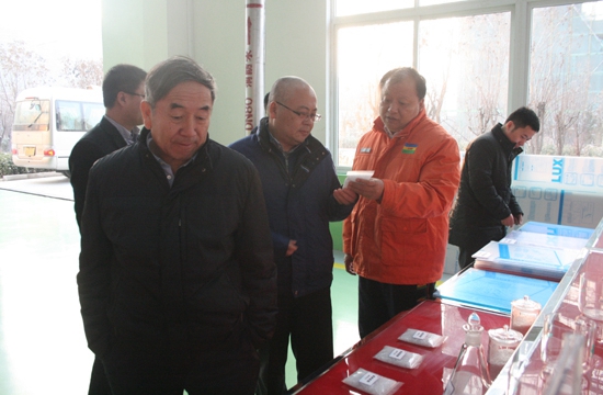 領導一行在聚碳酸酯裝置觀看企業的相關產品