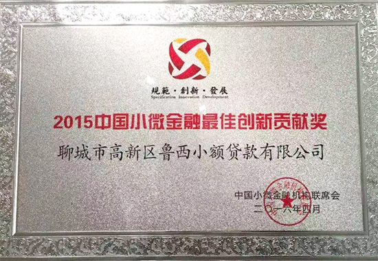 魯西小貸公司榮獲“2015中國小微金融最佳創(chuàng)新貢獻獎”