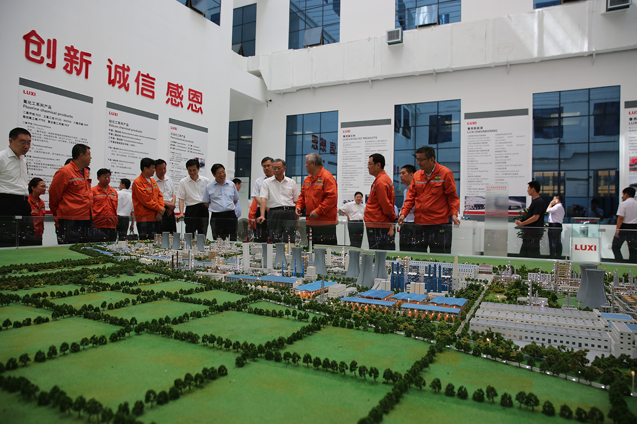 在產品展廳,張金成董事長匯報了集團近年來的發展情況和下一步的發展方向。他介紹說,按照全省發展高端化工產業的聚焦方向,集團堅持以供給側改革為總抓手,堅決抓住新舊動能轉換的有利時機,按照環保節能、淘汰落后產能的要求,在前期先后關停、轉型、進園4家城區企業的成功基礎上,2016年又先后停運了3家城區化肥生產企業,實現平穩停車、平穩過渡,投資60億元建設的退城進園一體化項目順利實施。集團逐步實現了由傳統化肥向基礎化工,由基礎化工向化工新材料的轉型。盡管受到地域、資源、能源、交通物流等因素的限制,魯西集團堅定向高端化工進軍的信心和決心,表示要努力把高分子材料產業做好,實現技術性的重大突破。制造加工業方面,已經形成了較強的化工裝備制造能力,擁有自行設計、自行制造、自行安裝,關鍵技術自行研究的強大優勢。根據目前自身的發展條件,今后堅決做好制造加工業,并將制造與工程產業作為集團的第二核心產業進行培植,為國家的基礎行業發展作貢獻。