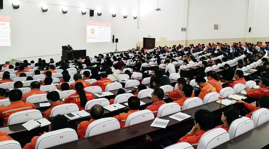 11月22日,聊城市國資委組織各市屬國有企業在魯西集團召開了以“不忘初心牢記使命”為主題的黨的十九大精神宣講活動,國資委黨委副書記、主任張春華同志主持并宣講。各市屬國有企業的黨委班子成員、各黨支部書記、中層正職以上干部共500余人參加。