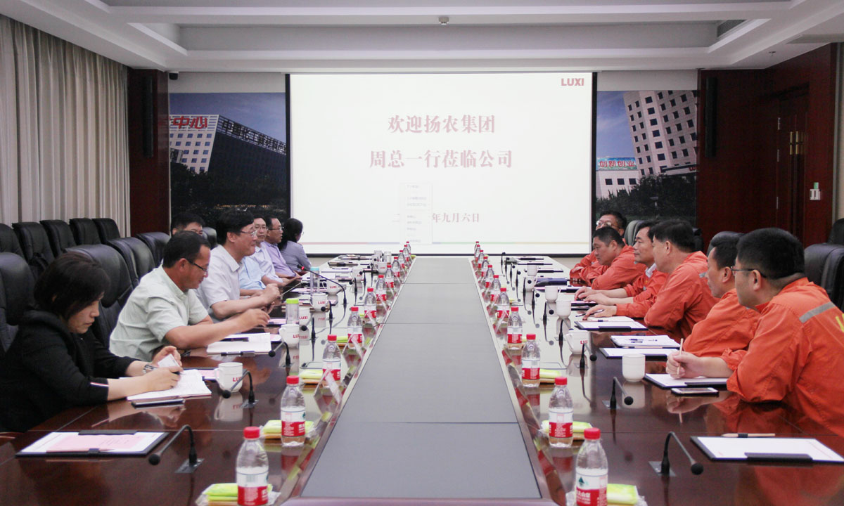 9月6日,揚農集團總經理周穎華、圣奧化學集團副總裁唐志民一行來集團參觀交流,魯西化工副總經理王富興、姜吉濤等陪同接待。