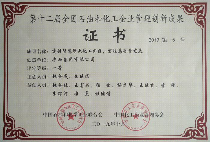 大會發布了管理創新成果獎105項,其中一等獎33項、二等獎53項、三等獎19項。魯西集團申報的“建設智慧綠色化工園區,實現高質量發展”被評為管理創新成果一等獎。