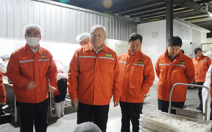在第三餐廳,黨委書記仔細查看了年夜飯的備齊情況。在看到正在使用的水餃機和自動炒鍋時,詢問周邊企業(yè)是否有更先進的食品加工設(shè)備,當?shù)弥覀冊诖妒略O(shè)備選型和使用已經(jīng)比較先進時,要求堅持人員不增加,繼續(xù)做好相關(guān)先進設(shè)備的考察和選用,利用好先進的設(shè)備。同時叮囑膳食處負責人要嚴格抓好食品安全關(guān),做好購進食材的驗收、檢測、儲存等環(huán)節(jié)管理,確保員工就餐安全,確保員工過年吃的安心、放心、開心。