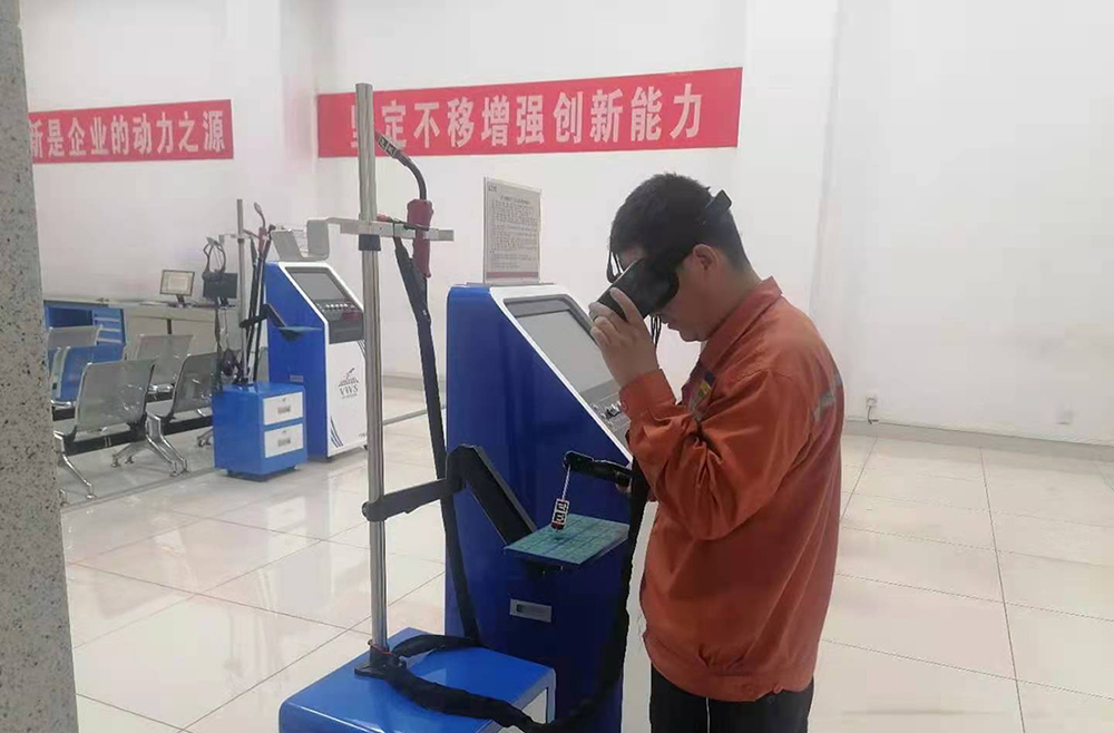 5月23日,在魯西集團實訓中心的焊接實訓區(qū),看到兩位員工正戴著VR眼鏡,手持自動焊槍,專注的在焊接試板上進行焊接練習。在這里根本看不到實景焊接中焊花飛濺的景象。培訓負責人介紹說:“這是焊接模擬仿真實訓區(qū),該系統(tǒng)是新一代環(huán)保、節(jié)能、通用型焊接操作技能實訓與考核平臺。練習過程中,不使用焊條,原料0消耗;不產(chǎn)生煙氣,空氣0污染。適用于焊接零基礎(chǔ)的員工進行培訓。能夠滿足員工焊條電弧焊、氬弧焊、CO2氣體保護焊、機器人編程教學操作基礎(chǔ)知識培訓及安全考核模擬。”