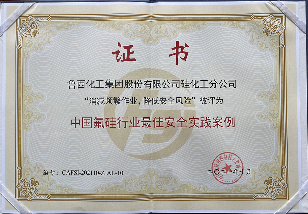 中國氟硅行業“安全衛士”“最佳安全實踐案例”和魯西有關