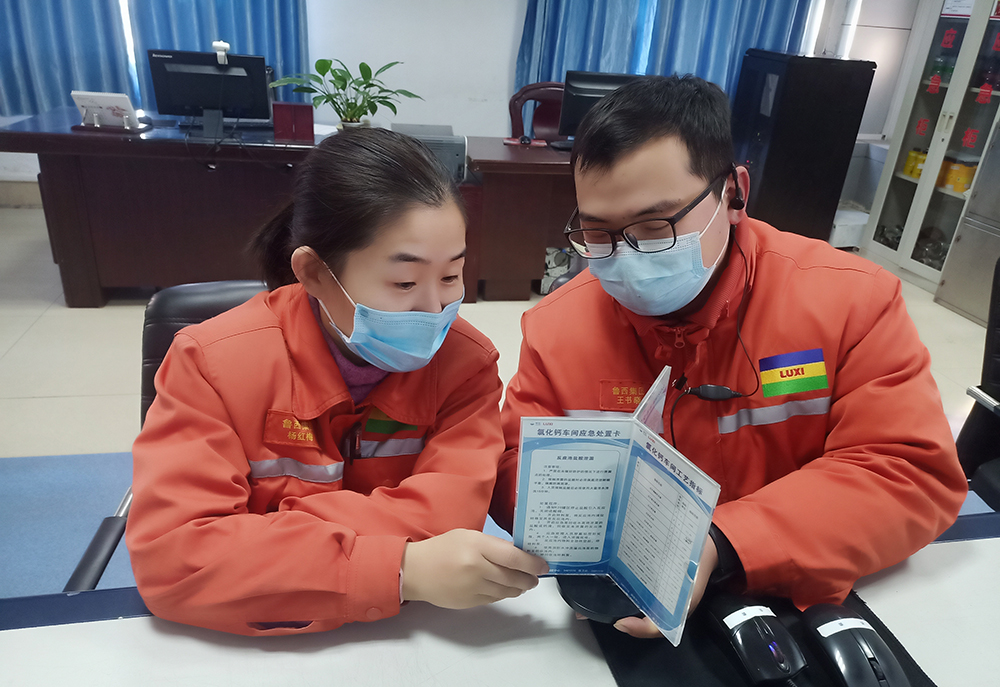 近日,在氯化芐事業部每個DCS崗位操作臺的一角都規整的擺放著一個類似相框的旋轉擺臺。調度龐玉奇正在向操作人員介紹著這個旋轉擺臺,“這就是咱們氯化鈣操作崗位的‘一崗三卡’擺臺,它分為三面,是可以旋轉查看的。三卡包含崗位物料MSDS卡、應急處置卡和安全風險卡。崗位物料MSDS是指本崗位的崗位物料知識及工藝指標要求;安全風險卡包含崗位危險因素知識;應急處置卡包含危險品應急處置程序。大家一定要掌握這些應知應會的基礎知識。”