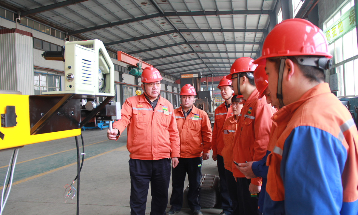 其后,黨支部張書記在制作廠房現(xiàn)場針對大型設(shè)備工具的使用,詳細(xì)講解了龍門焊機(jī)及組立機(jī)使用的基礎(chǔ)知識、十字大臂焊機(jī)的原理、應(yīng)用及預(yù)防措施。期間,張書記對大家提出的疑難問題進(jìn)行了解答。指出使用先進(jìn)自動化設(shè)備、工具,一是提高了產(chǎn)品質(zhì)量和工作效率;二是降低了勞動強(qiáng)度;三是減少了焊接產(chǎn)生的煙塵,改善了作業(yè)環(huán)境。并要求使用人員務(wù)必保證設(shè)備在良好的狀況下運(yùn)轉(zhuǎn),確保機(jī)器設(shè)備、工夾具等精度達(dá)到生產(chǎn)要求,確保產(chǎn)品“一次做到最好”。